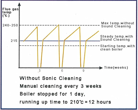 聲波清潔的基本原理是,通過(guò)產(chǎn)生一個(gè)帶有一定能量的聲波,抵消游浮在氣流中灰垢的聚集力或表面粘附力,以阻止其相互之間結(jié)合成一硬殼層。